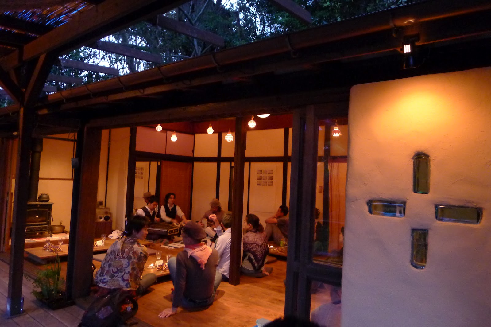 ディナーの前にばくちゃん、はじめちゃん、そしてインド、ムンバイ在住のさぶちゃんが帰国中ということで、サントゥールという珍しい楽器を飛び入りで演奏してくれました。夕暮れから始まったライブはしっとりと、そして派手さはないもののクライマックスに向けて高揚してくるサウンドに合わせるようにだんだんと夜が更けていく様子がとってもムーディーで大人の空間を演出してくれました。